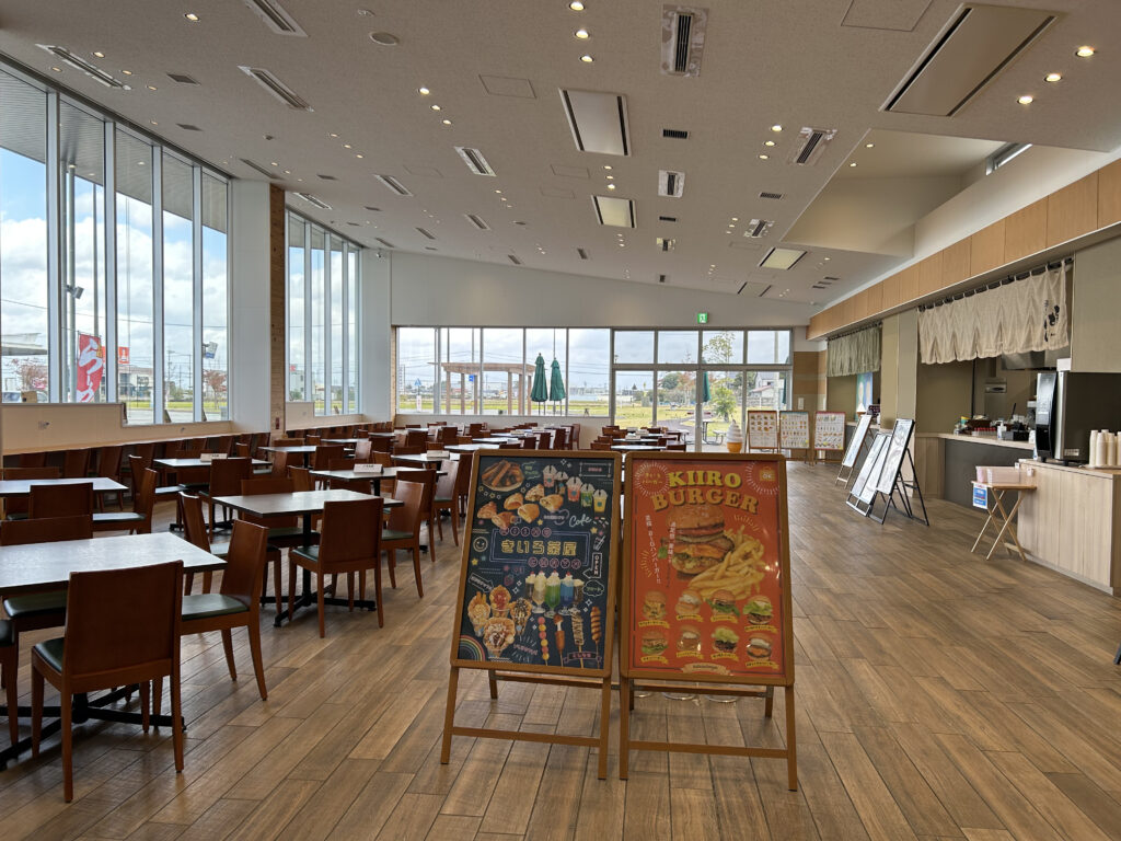 明るくゆったりとした120席の開放的な大空間はフードコート形式で3店舗が営業。地元特産の食材を活かしたバラエティー豊かなグルメやスイーツを楽しめます!今回は白山の名産品がのったうどん・そばが食べられる麺屋㐂色を利用しました。