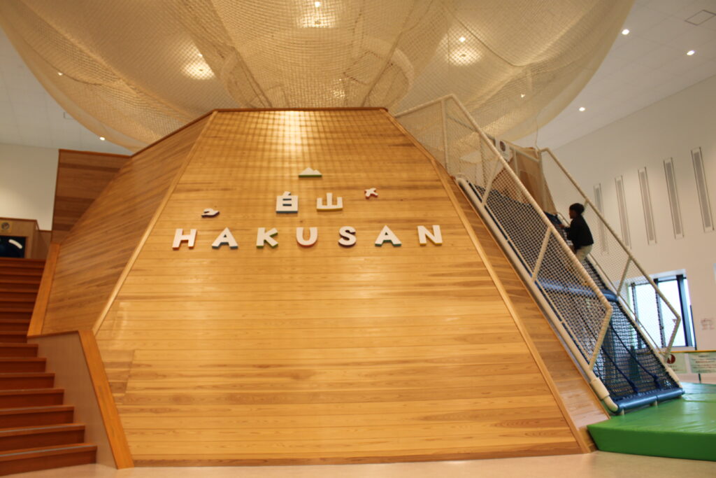 入るとすぐにある大型遊具は霊峰白山をイメージ。ボルタリングや滑り台、珍しい登り専用のチューブもありました!