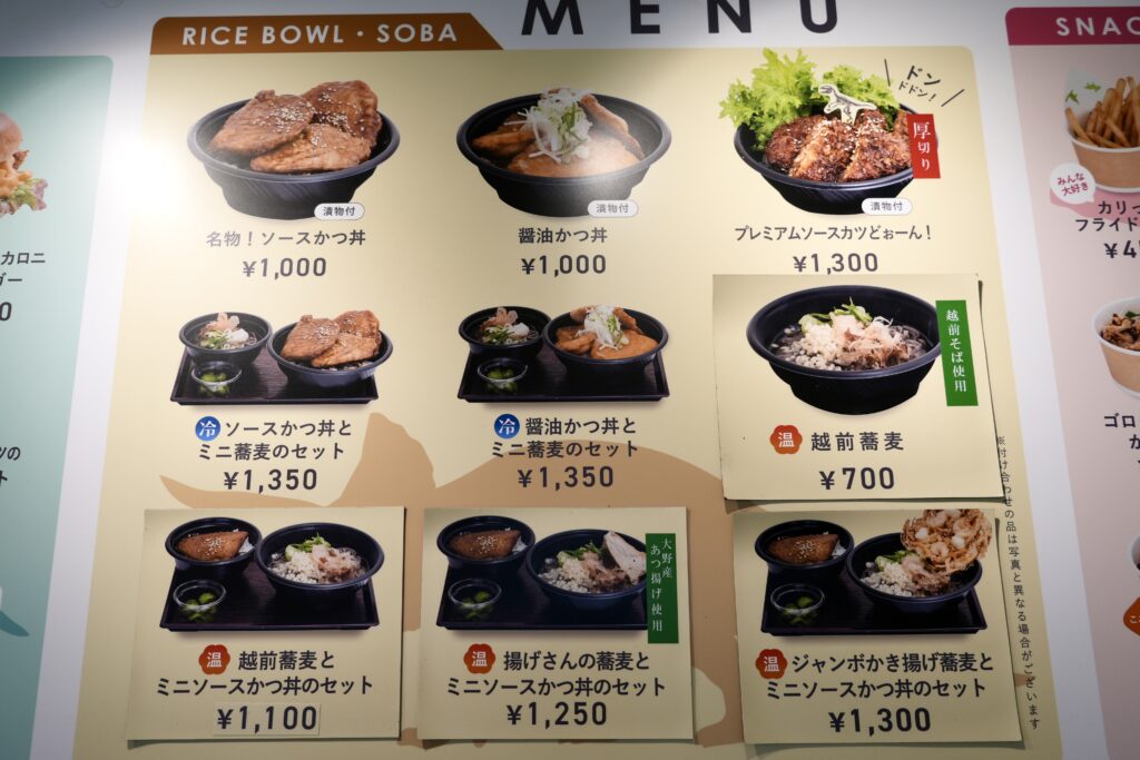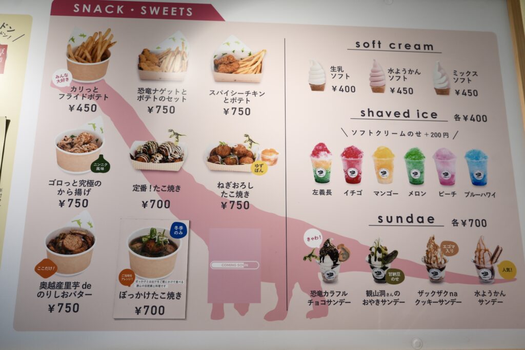 そのほかにもビーフ100%のハンバーガーやソースカツ丼、おろしそばやたこ焼き、アイスなどの軽食からデザートまで揃っています。