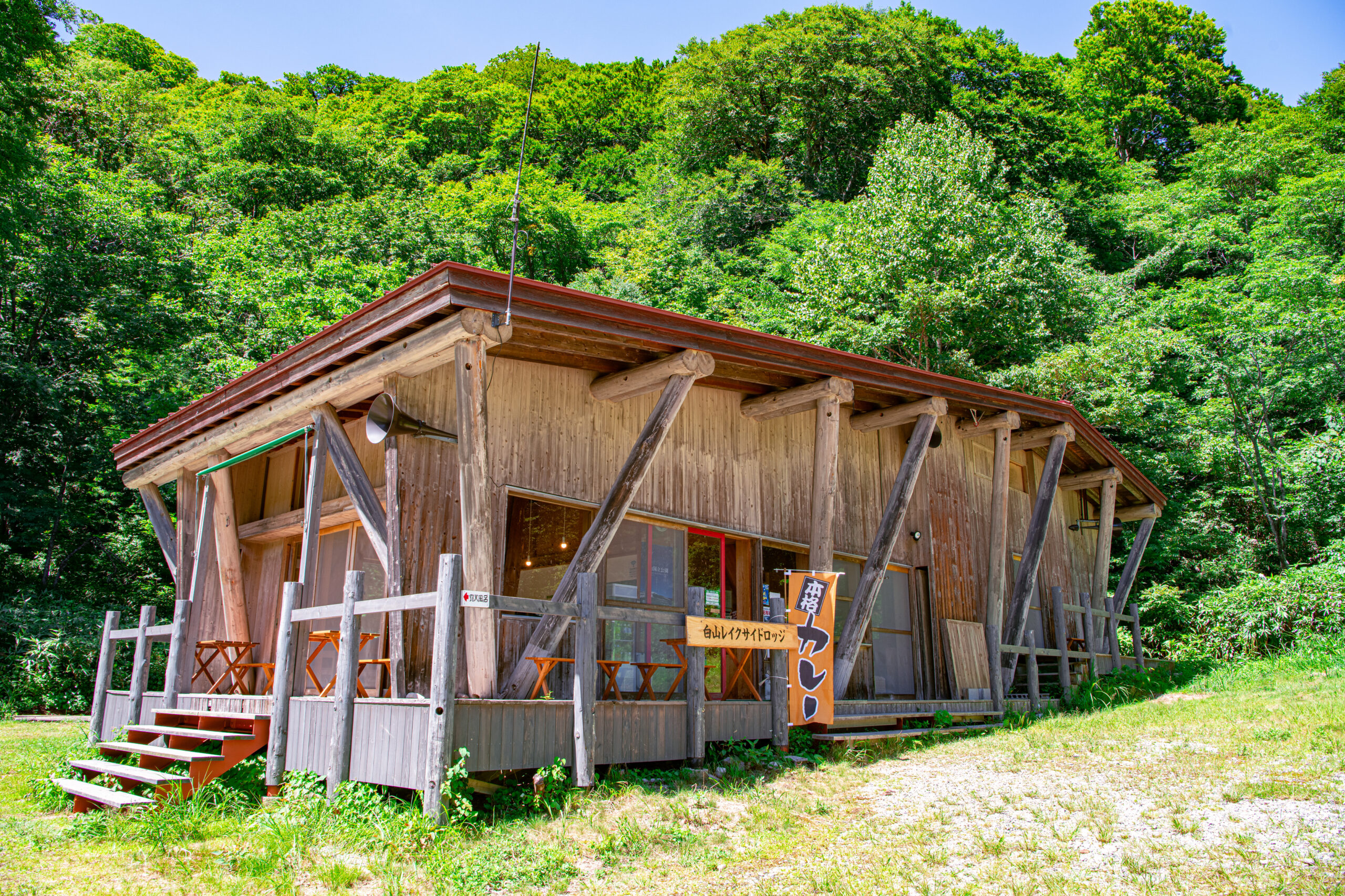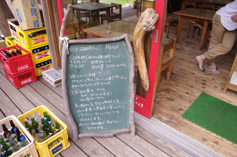 湖畔にある「白山レイクサイドロッジ」では、白水湖を眺めながらコーヒーや軽食をのんびり味わえます。