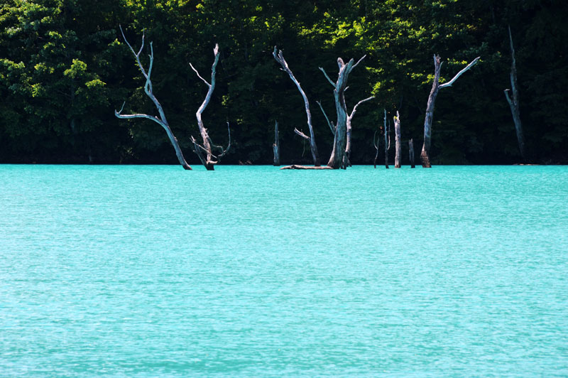 白水湖(読み方:はくすいこ)は、大白川園地にあるエメラルドグリーンの美しい湖。手つかずの原生林に囲まれており、まるで秘境のような静けさが味わえます。思わず写真を撮りたくなる美しさです♪