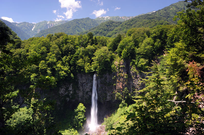 「白水滝(読み方:しらみずのたき)」は高さ67.4m・幅8mの絶壁を一気に流れ落ちる名瀑。滝しぶきが白い水煙となって立ちのぼり、この乳白色の水の色から「白水滝」と呼ばれるように――やがて「白川郷」という地名の由来にもなっているのだとか。 2024年に国指定名勝に指定された今注目の絶景スポットです。