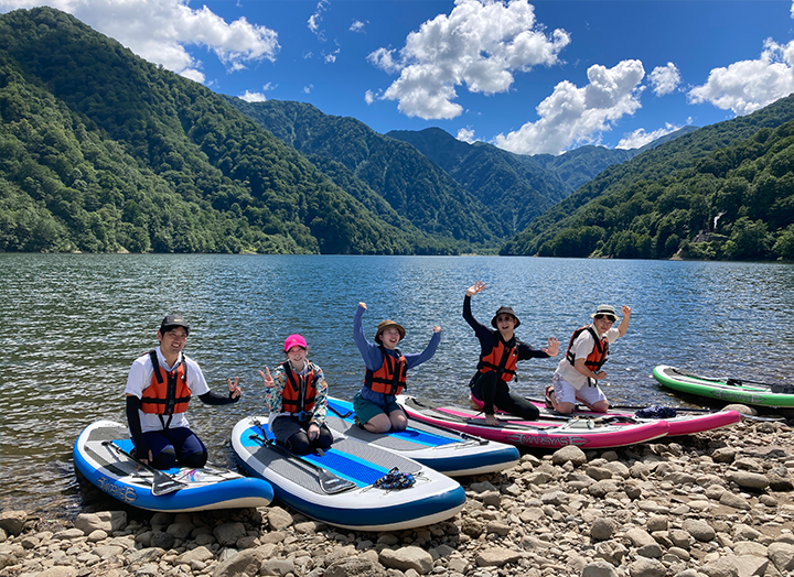 どちらも集合場所が白水湖のすぐ近くなのでアクセス面も◎ 「白川郷アクティビティーセンターo8 」にはワンちゃんと一緒に楽しめる「ワンコSUP」もありますよ。