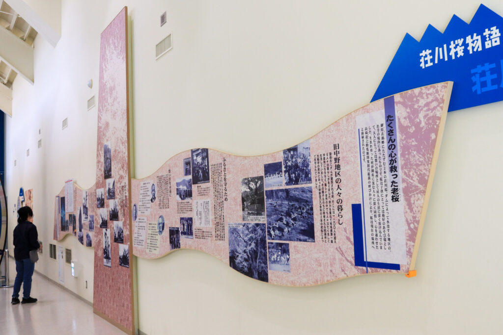 荘川桜の移植物語もパネルやオリジナルの映像で紹介しています。