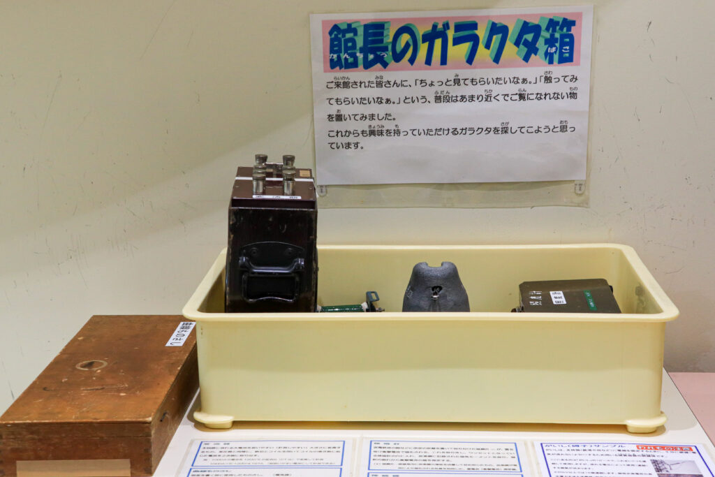 「館長のガラクタ箱」には見た事のない不思議な道具が入っていました。お仕事に従事されてる方でないとその使い方も用途もまったくわからない!けど、これらの道具を使って多くの方々がお仕事をされてきたのだと思うと、今の便利な生活を送れている日常に感謝するばかりです。