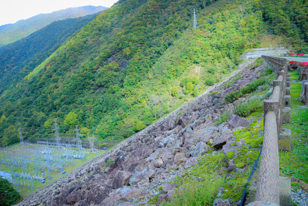 御母衣ダムは、高さ131m、幅405mにわたって築き上げられた、大規模なロックフィルダムとしては日本初のダムです。完成時はその巨大さから「20世紀のピラミッド」と形容されたほど。その規模は当時東洋一を誇った世界有数のダムです。ここで作られた21万5千キロワットの電力は関西方面に送られています。