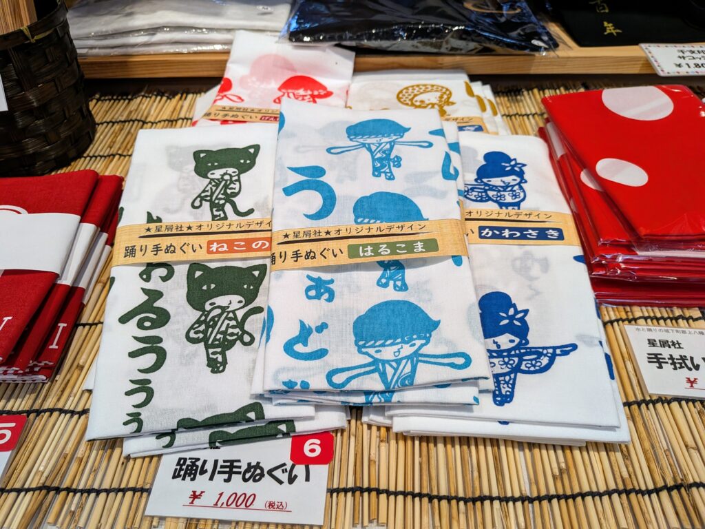 館内のお土産コーナーには、郡上おどりに欠かせない「手ぬぐい」が、オリジナルデザインで豊富に揃っています。