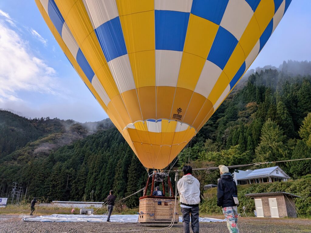 熱気球体験は、風の影響が少ない早朝の時間帯に開催されます。