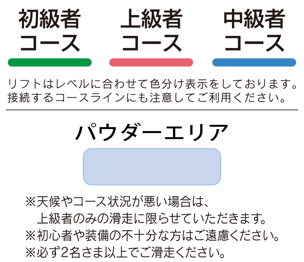 何より魅力は、最長1,500mにもおよぶロングコース。初級・中級・上級とレベルに合わせて多彩なコースを選べるのがうれしいポイントです。上級者に人気の「パウダーエリア」は今シーズン、さらにワイドに拡張されて登場!雪質抜群の斜面で、思いきり滑りを楽しめます。