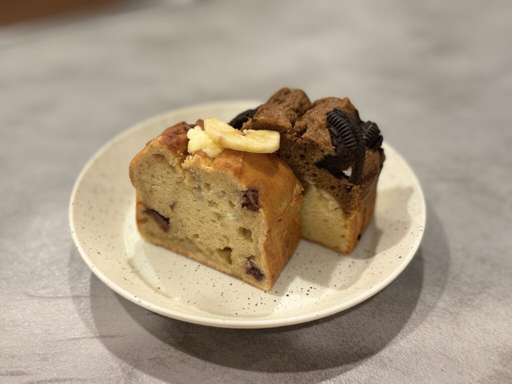 バナナとカフェオレのパウンドケーキもお土産にテイクアウト♪米粉とお豆腐を使っているのでこどものおやつにもオススメ!しっとりとしていて食べ応えもあってとっても美味しかったです^^
