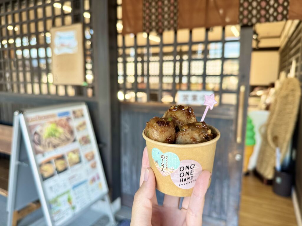 食べやすいように、カップに入っているのもまた可愛い♪テイクアウトもできるので、まち歩きのお供にもぴったりです。ねっとりとした里芋の食感に、味噌の甘みとねぎの風味が絶妙にマッチ。ひと口食べると止まらなくなる美味しさで、観光客の方にも大人気です^^