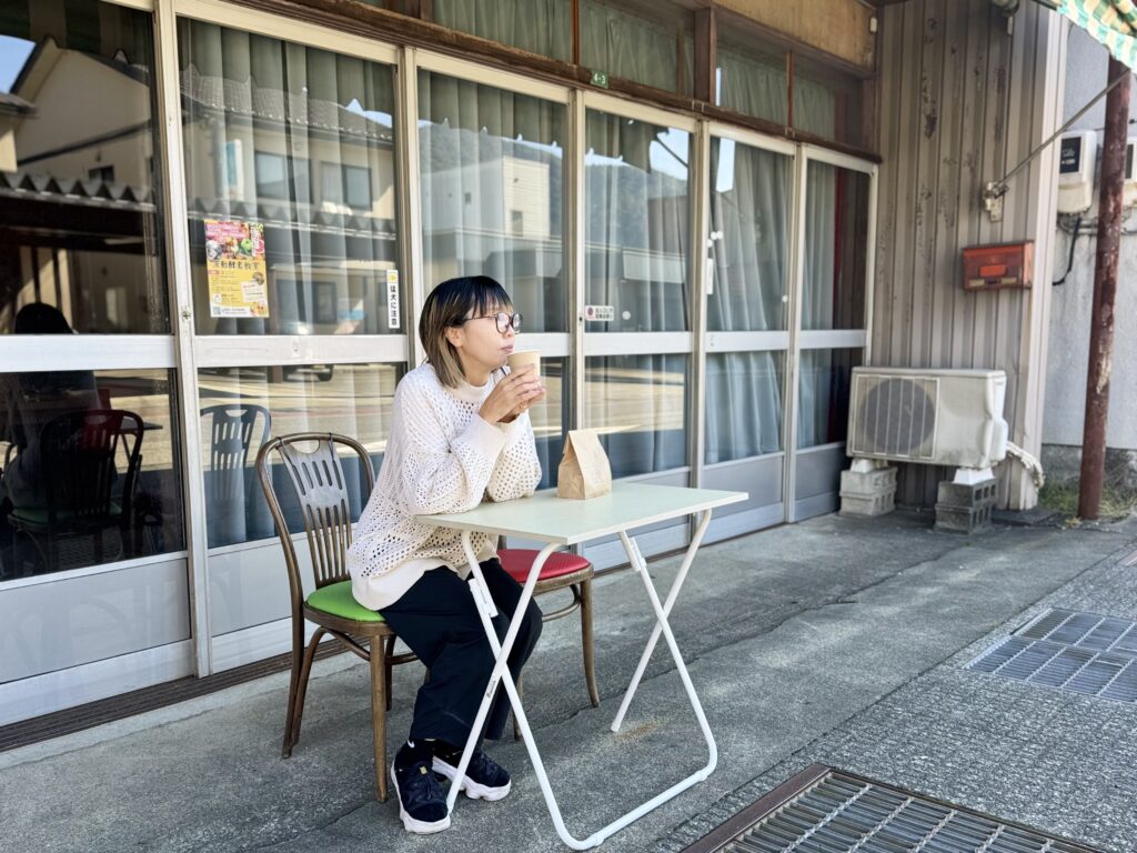 里芋の自然なとろみでコクがありながら後味はすっきり~!里芋とココア!?と最初は驚きましたが、これはぜひ飲んでだいただきたい大野ならではのドリンクです。ホットでも楽しめるので、冬のまち歩きにもピッタリです。私はお店前の椅子でひと休憩させていただきました♪ゆっくり大野の空気を感じられました^^