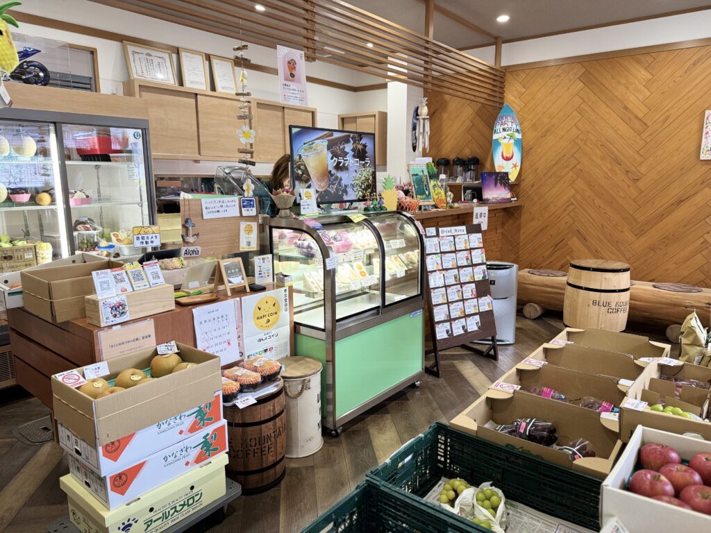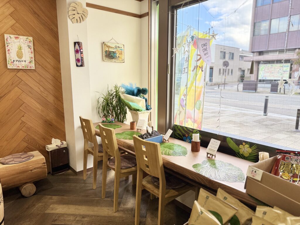テイクアウトしてまち歩きをしながら食べるもよし、飲食スペースでひと休憩するのもいいですね^^大野駅や先ほどご紹介した「ねんりん茶屋のーそん」からも歩いて行ける距離なので、観光の合間に立ち寄るのにも便利です。