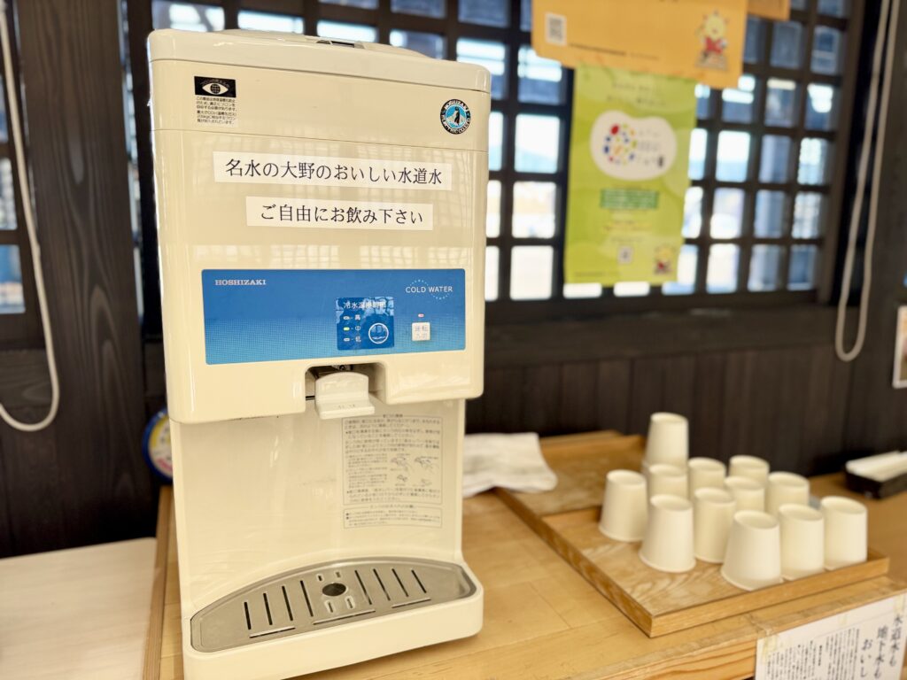 大野のおいしい名水のサービスも!大きな城下町東広場(無料の観光駐車場)に面しているので、アクセスも便利ですよ。