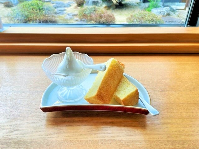 もうひとつのおすすめは、六呂師高原の生乳をたっぷり使ったシフォンケーキ。甘みをおさえ、しっとり柔らかなシフォンケーキが絶品です!ミニソフトも付いてるのが嬉しいですよね~^^大野の大自然を感じる味わいで、食後のデザートにもぴったりです。