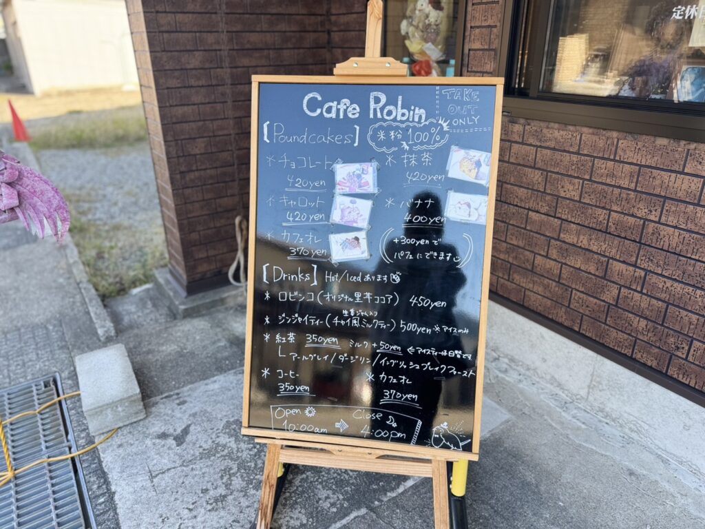 大野市元町にある「Cafe Robin(カフェロビン)」は、テイクアウト専門のカフェ。米粉と豆腐を使ったパウンドケーキや、体に優しい焼き菓子やドリンクを販売しています。