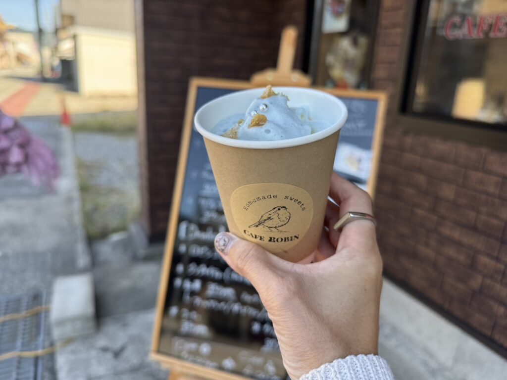 この日は肌寒かったので、ホットのドリンクにしました^^注文したのは「星空ロビンコ」。星空保護区®に認定された、大野の夜空をイメージしたココアドリンクです!ホットだと容器で見えにくいのですが・・・