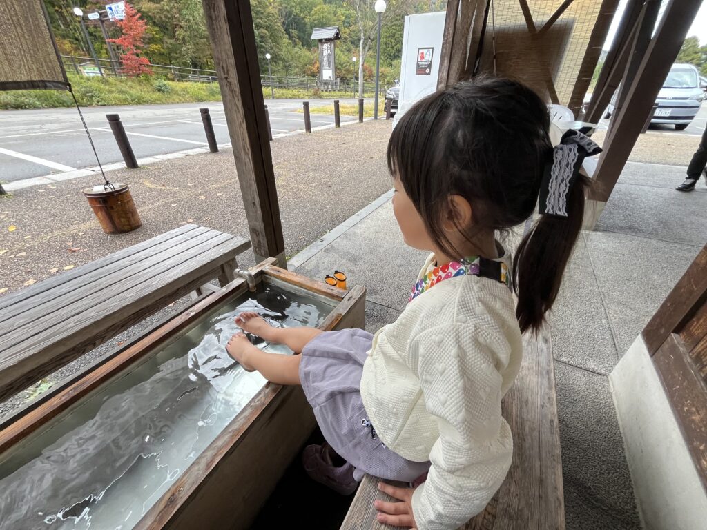 タイツやストッキングを履いたまま足湯ができるビニールや替えの靴下も販売されており、気軽に足湯ができる点も魅力。この日は気温が13℃と肌寒かったので、足湯の温かさに癒されました。