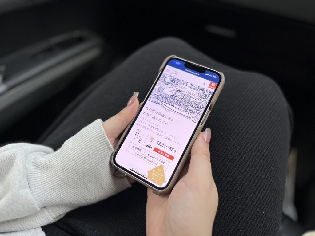 今回のドライブで重宝したのが「シラカワ・ゴーイング」。こちらは白川村の交通ライブ情報・渋滞回避に役立つ情報が満載のWebサイト。白川村がオーバーツーリズム未然防止対策の一環として開設したサイトです。