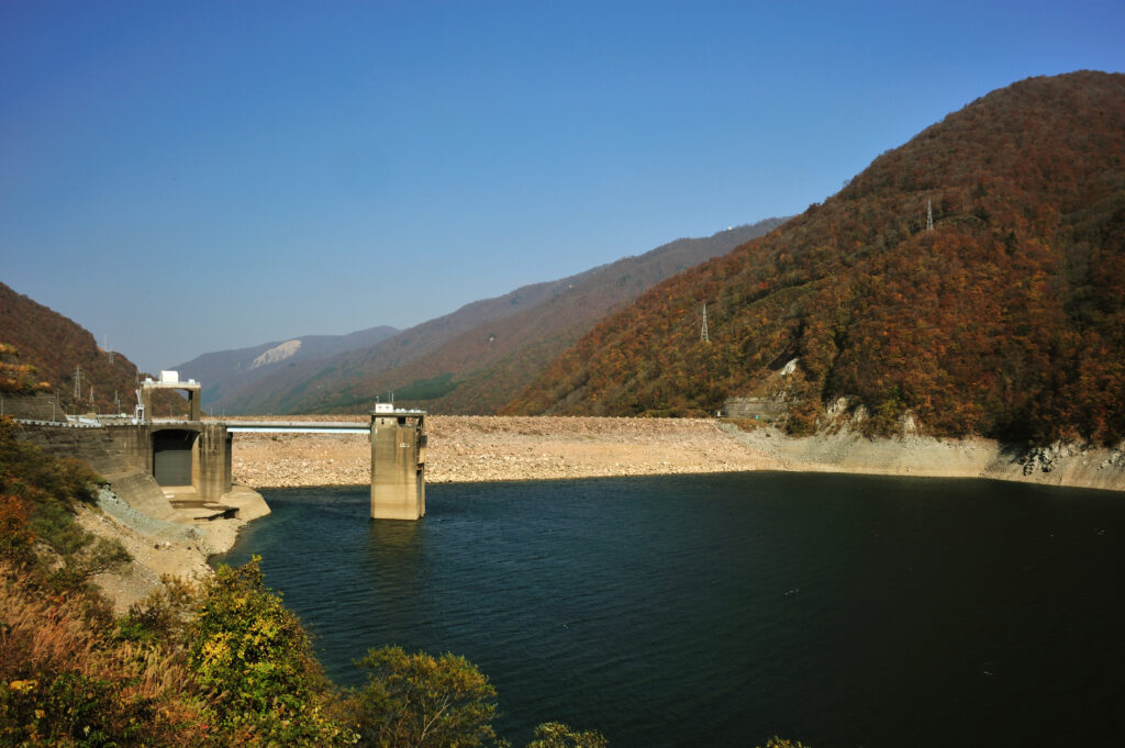 荘川ICから約15分ほど車を走らせた場所に位置するのが、「御母衣(みぼろ)ダム」です。岩石や土砂を積み上げて築かれたロックフィル式ダムとして知られ、展望台からは絶景が眺められます。