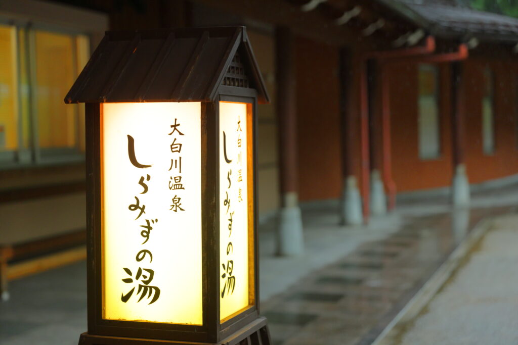 続いて「大白川温泉しらみずの湯」で、日帰り温泉を楽しみましょう。こちらは、地元の方にも愛される日帰り温泉で、ドライブがてら立ち寄るのにもぴったり。温泉だけでなく、マッサージ施設や食事処もあり、この日も館内は多くの人で賑わっていました。