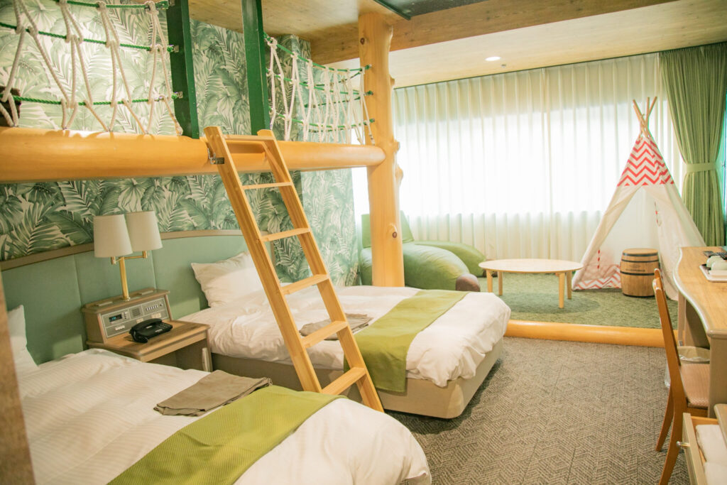このホテルの魅力は、なんといっても “恐竜モチーフ” の客室がそろっていることです。お子様に喜ばれること間違いなしの、遊び心あふれるお部屋が用意されています。