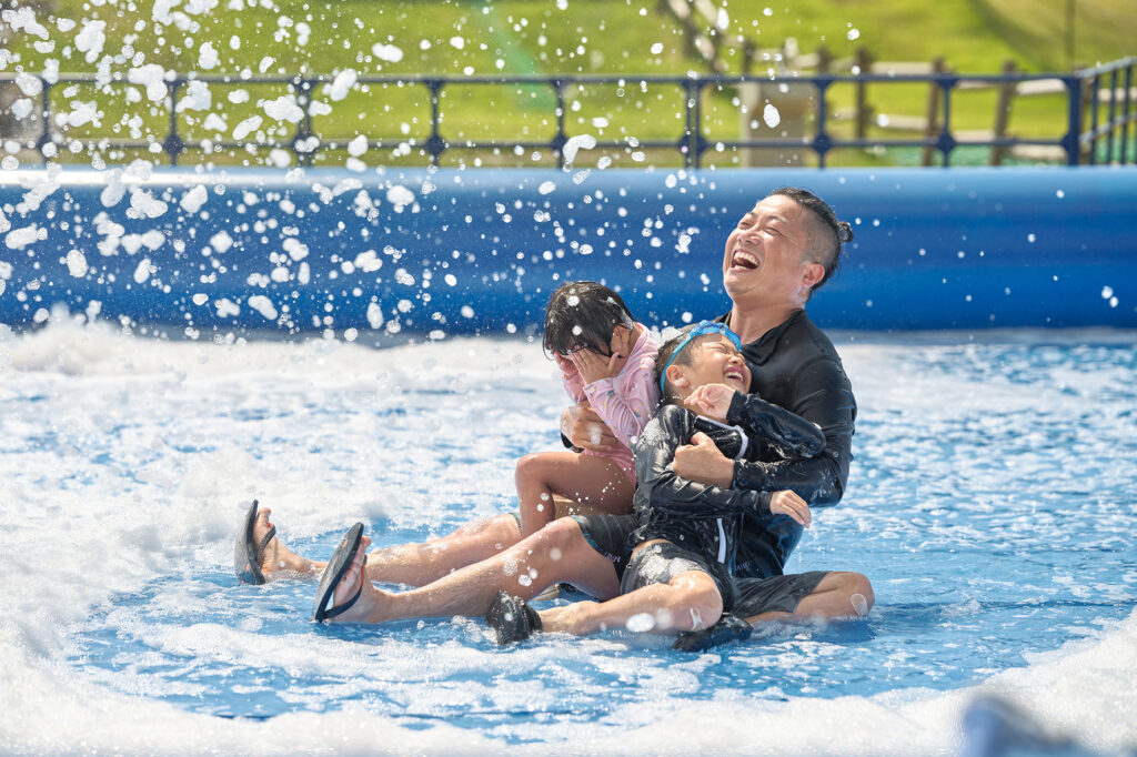 夏期(7月〜9月)限定で登場する「恐竜ウォーターランド」は必見!目玉は、浮き輪で滑り降りる全長約30mのスライダー「じゃむTheブーン」☆音楽に合わせて大量の泡が噴き出す「アワアワアワー」も大人気です♪小さなお子さま向けにはミニスライダーや巨大エア遊具もあります。エリア内にはエアコン完備の休憩所もあるので、家族で安心して楽しめます。