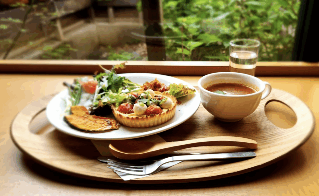 お昼は、歴史と地元文化を感じられる「道の駅古今伝授の里 やまと」や地域交流スポットで、地元食材を使った和食ランチやスイーツを楽しんで。ゆったり流れる時間の中で、雑貨や地元産の野菜・お土産を眺めたり、ふだん買わないようなものを見つけるのも旅の楽しみ。お腹も心も満たされて、午後からのドライブや散策に備えるのにぴったりな休憩地です。