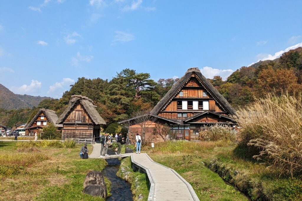 続いて向かうのは、世界遺産・白川郷の合掌造り集落。昔ながらの風景が広がるエリアで、合掌造りのカフェでひと休みするスイーツタイムも人気です。展望台からの眺めはまさに絶景。写真に残したくなる景色に出会えます。