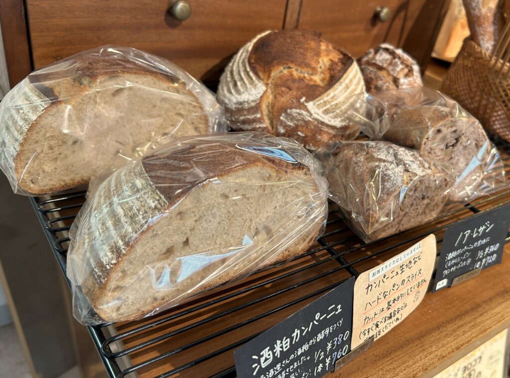 同じく開店当初からおなじみの「酒粕カンパーニュ」。ライ麦の全粒粉と石臼挽きの小麦粉をブレンドし、地元酒蔵「車多酒造」の酒粕からおこした自家製酵母でじっくりと発酵。酒粕由来の甘さと旨味、香ばしさが一体となった独特の味わいが魅力です。