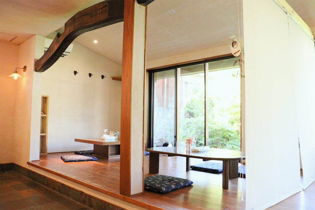 そして、なんといってもこちらの魅力は、お庭と山々を望むイートインスペース(テーブル席・座敷)。座敷スペースは、赤ちゃんや小さなお子さん連れに大人気。筆者のようなパン好きのソロランチにもぴったりです。