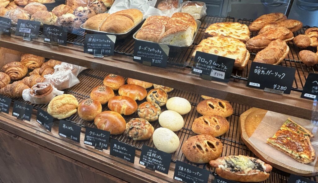 食パンやバケット、菓子パン、調理パン、ハード系パンに加え、旬の果物や野菜を使ったパンがあるのもお楽しみ。どれを選ぼうか、パン好きにとっては毎回のうれしい悩みです。