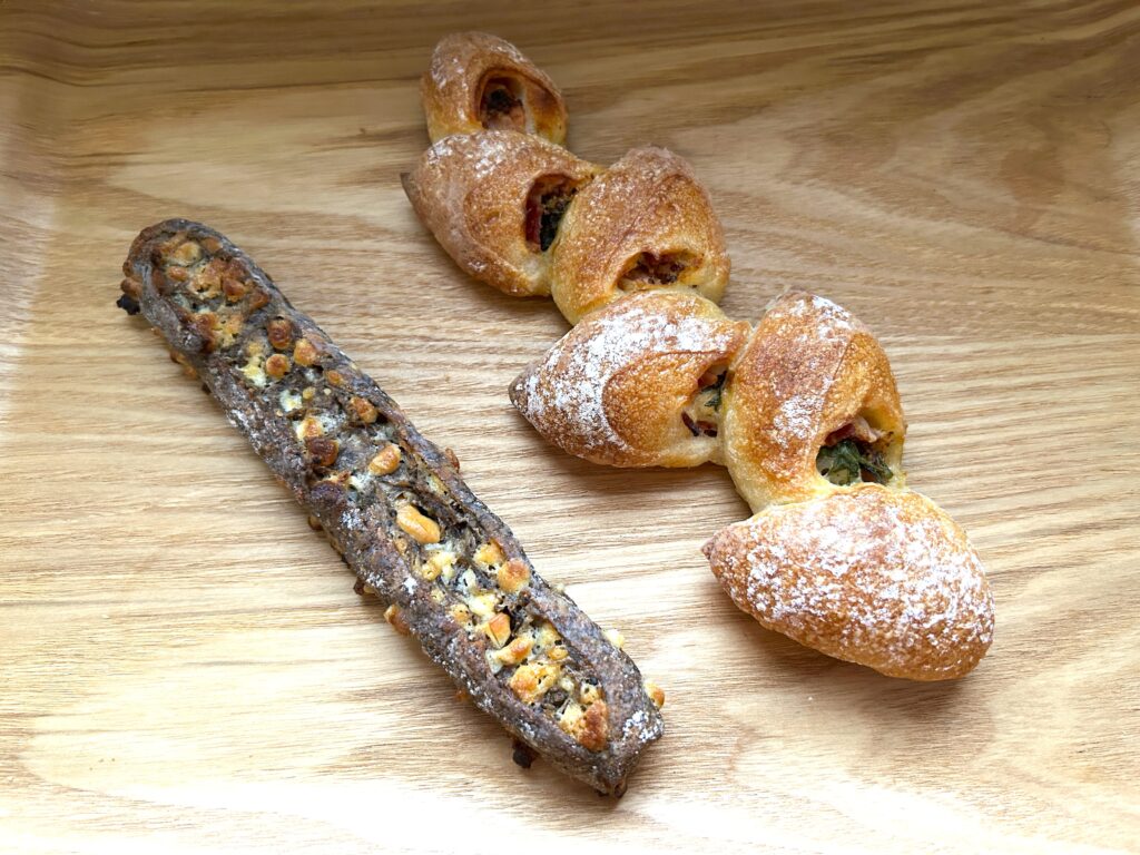 サンドイッチやチーズ系など惣菜系パンも豊富に並ぶなか、おすすめは2種の国産小麦をブレンドしたフランスパン生地の「ベーコンエピ」。香ばしくしっかりした歯ごたえがありつつ、口に残らないのどごしがなんとも上品。食事のほか、ワインなどお酒のお供にも合いそうですよ。