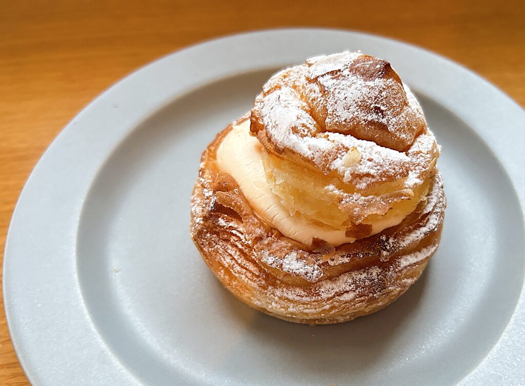 1番人気は、なんといっても「シュークロワッサン」。固めのクロワッサン生地にしっとりとしたシュー皮をのせ、自家製カスタードクリームをたっぷりはさんだビジュアルが抜群。背徳感満載なのに、どうしても手が伸びてしまう一品です♪