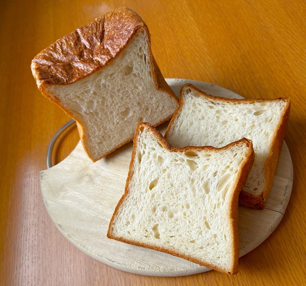 中種法で手間暇かけて作る食パンは、2~3日常温保存でもおいしさが長持ち。生で食べるとふんわりやわらか。トーストにすると歯切れ良いサクサク風味が楽しめます。