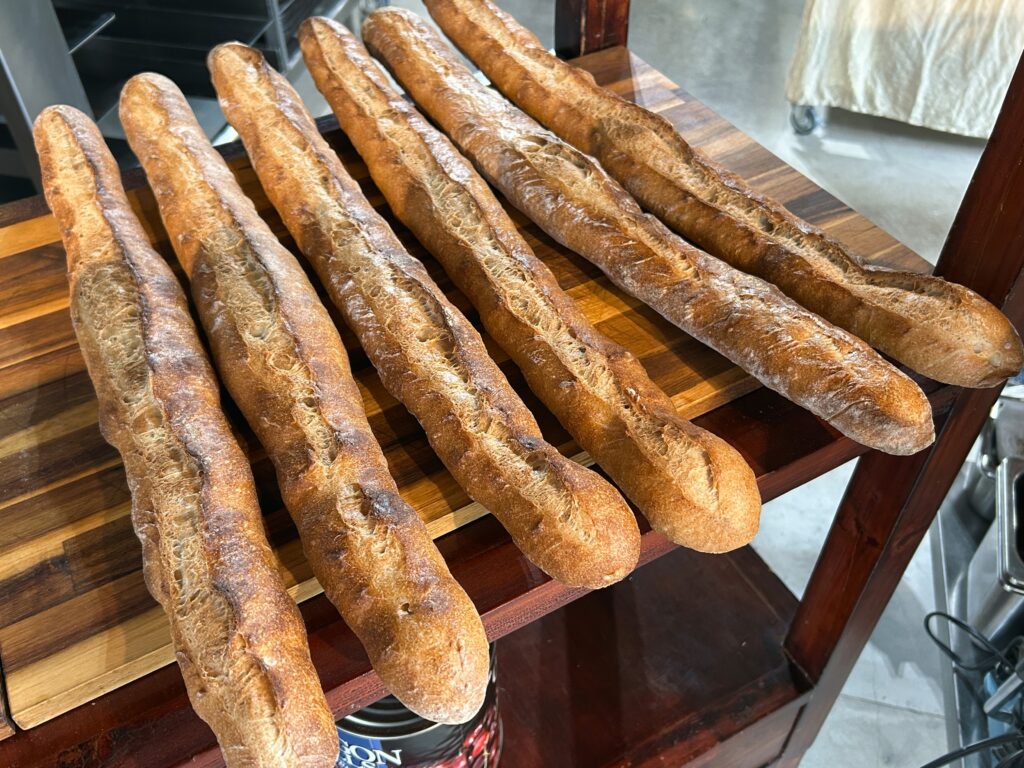看板商品の「ハルユタカバゲット」は、北海道産ハルユタカ100%で作る香り豊かなパン。オープン当初から、生地を継ぎ足しながら焼いているので、どんどん味わいに深みが増しているのだとか。カリカリの皮とふんわりクラムが食欲をそそります!