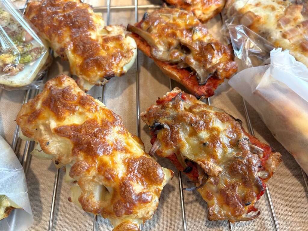 ツナポテトやトマトとモッツアレラチーズなど、具材をハルユタカバゲットにのせて焼いたパンも人気。