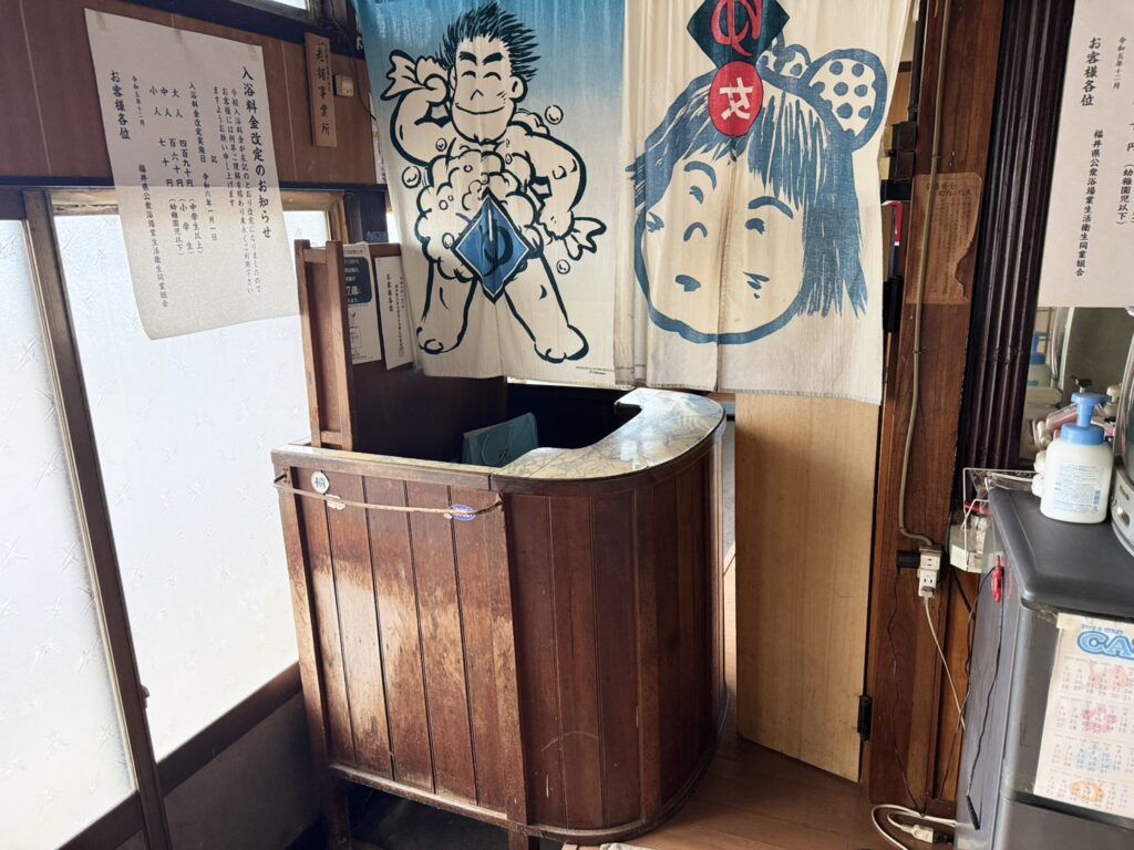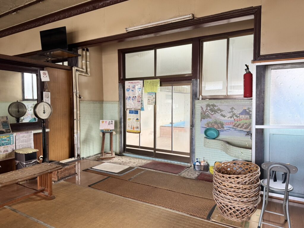脱衣所は、昔懐かしいレトロでかわいらしい雰囲気。ガラス扉や窓に貼られたシールも愛らしく、ぜひ注目してほしいポイントです。親子二代で切り盛りされているお店ならではのあたたかな空気感があり、初めて訪れる人でも、どこかほっとさせてくれます^^