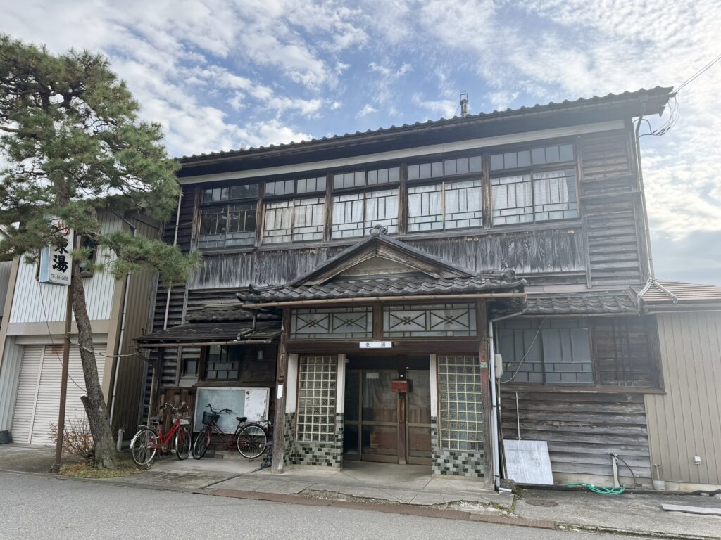 越前大野駅から徒歩約10分、大野市役所からは徒歩8分ほど。高砂町の住宅地の中にある東湯は、創業約90年の歴史を誇る銭湯です。建物は「景観特選おおの」にも選ばれており、長くまちの風景の一部として親しまれてきた、趣のある佇まいも大きな魅力のひとつ。