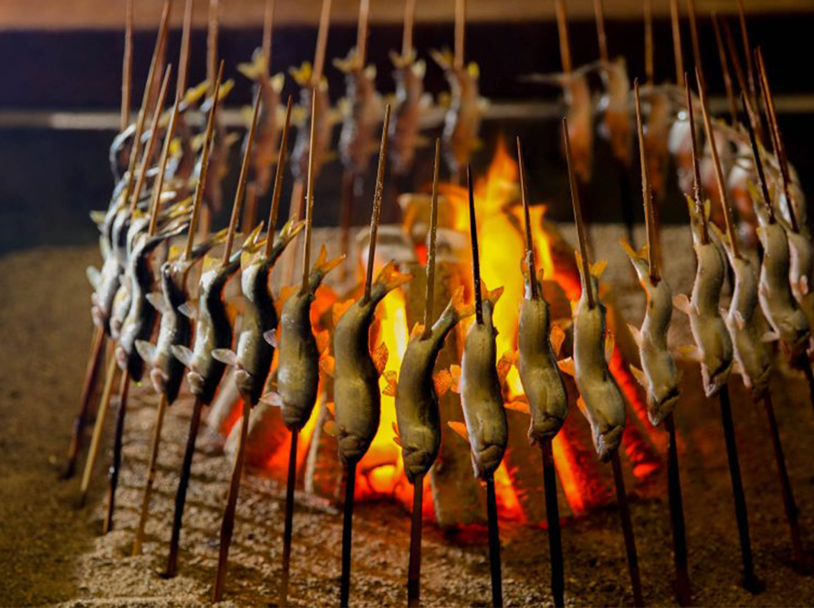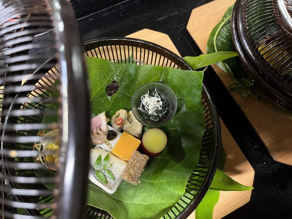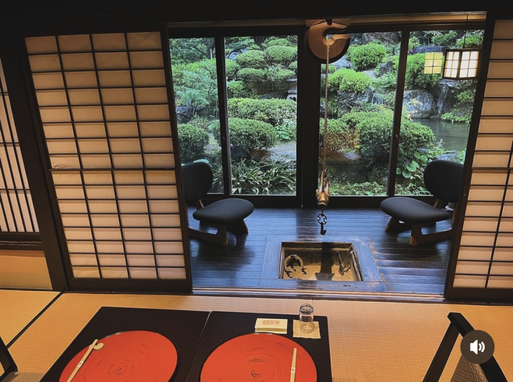 ランチは1時間30分〜2時間ほどかけてゆっくり提供され、庭を眺めながら過ごす時間も、まるでご馳走のよう。そして何より印象的なのが、各お部屋にある囲炉裏で焼かれる旬の食材です。目の前で焼いてくれるので、パチパチと焼ける音や香ばしい香りを感じながら、出来たてをいただけます。五感で楽しめるからこそ、おいしさもいっそう深まります。